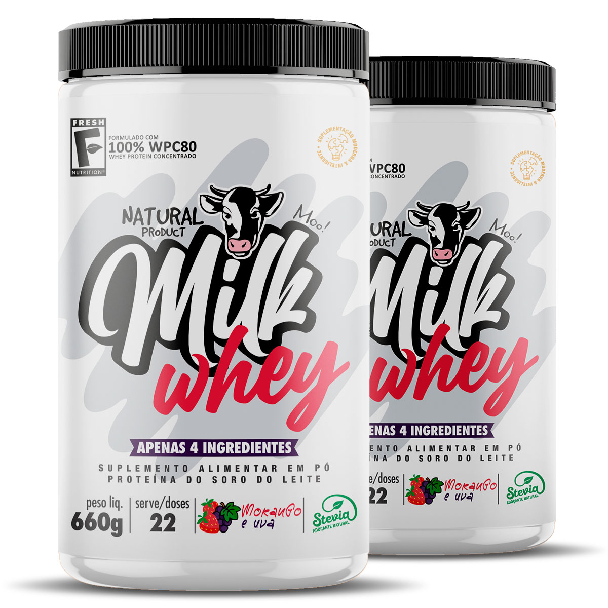 A Milk Whey Morango com Uva da Fresh Nutrition é a escolha certa para quem busca uma proteína de alta qualidade, sabor marcante e fórmula limpa. Produzida com WPC 80% (proteína concentrada do soro do leite), ela entrega alto teor proteico (até 80%), baixo teor de gordura e carboidratos, e uma excelente digestibilidade.