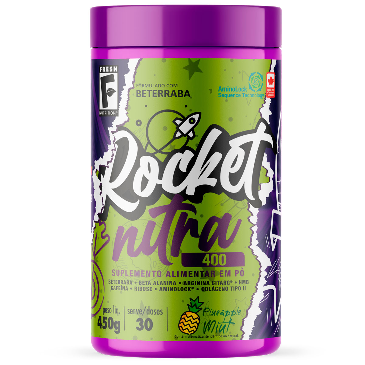 O pré-treino ROCKET NITRA 400 é uma inovação da Fresh Nutrition®. Combinamos aminoácidos, vitaminas e vasodilatadores ricos em NO2, como derivado da Beterraba (NIT400mg) e a alga marinha Citarg® (54mg), ao HMB (hidroximetilbutirato), um nutriente que atua na reabilitação muscular, aumentando a força durante os treinos e evitando a perda de massa magra. Agora, potência, força e performance farão parte dos seus treinos.